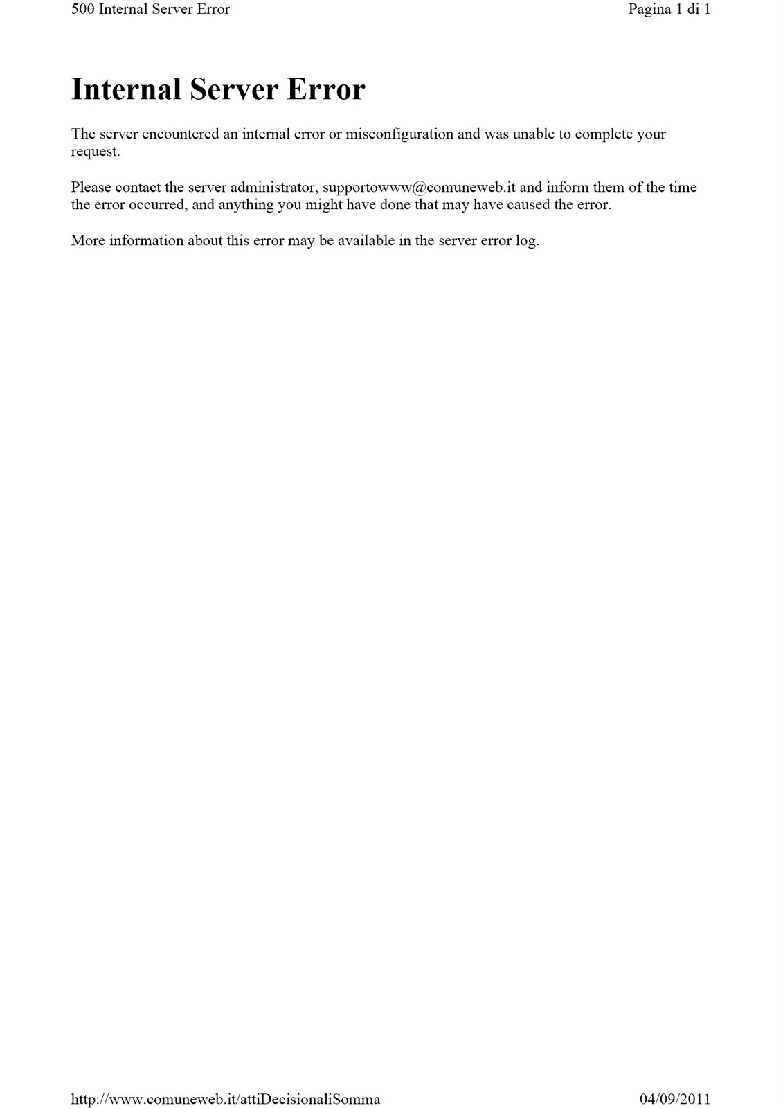 Oggi alle ore 16 sono dal mio Avvocato per dare seguito legale alle nuove strategie conseguenti alle due lettere come sopra citate. Ma c'è un problema. Mi ero tenuto il week end per preparare le nuove lettere da spedire con le "Bozze delle Ordinanze" che volevo predisporre e consegnare domani al Sindaco, ma non ho potuto fare nulla perchè il server del Comune, da sabato, è fuori uso... e anche questa mattina - se voglio accedere agli atti - mi da questo risultato: