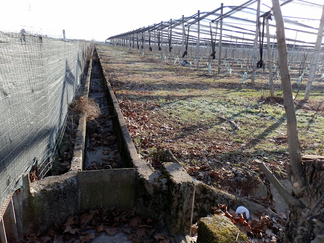 Con le sottostanti immagini - dopo quelle pubblicate due giorni fa - ho rappresentato l'attuale situazione della Coltivazione di Kiwi che c'è ad est della Discarica Siberie, dove appare evidente che questa situazione è quella che c'è da decenni: "irrigazione per scorrimento ad immersione".