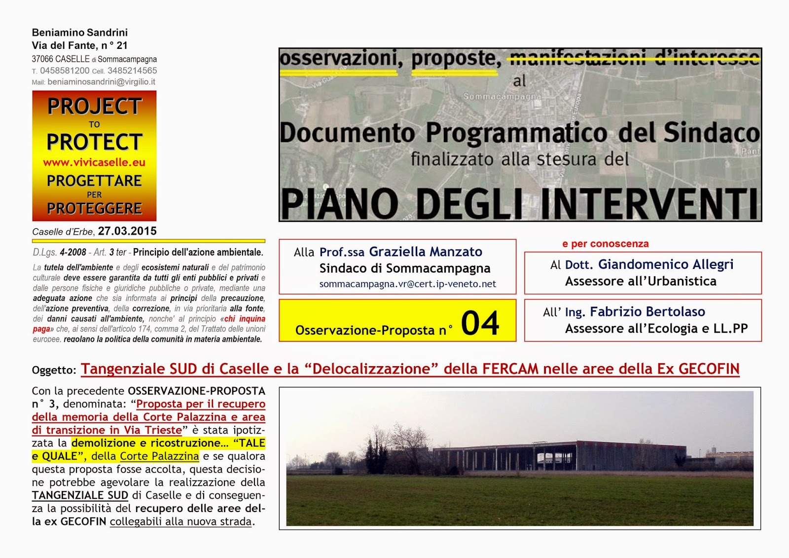 PIANO INTERVENTI - Osservazione-Proposta n° 4 - Oggetto: Tangenziale SUD di Caselle e la “Delocalizzazione” della FERCAM nelle aree della Ex GECOFIN