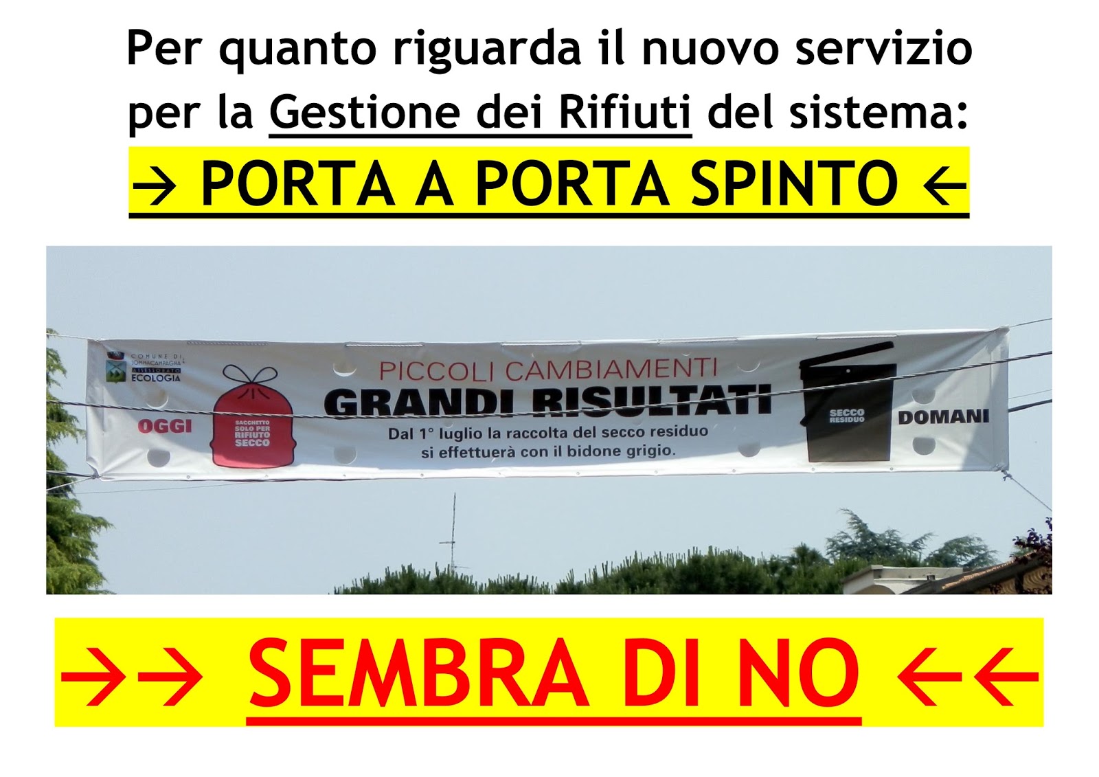 A Sommacampagna… per quanto riguarda il nuovo servizio per la Gestione dei Rifiuti del sistema: "PORTA A PORTA SPINTO"... c'è COLLABORAZIONE tra: AMMINISTRATORI (loro) e AMMINISTRATI (noi)? A me medesimo mi... SEMBRA DI NO