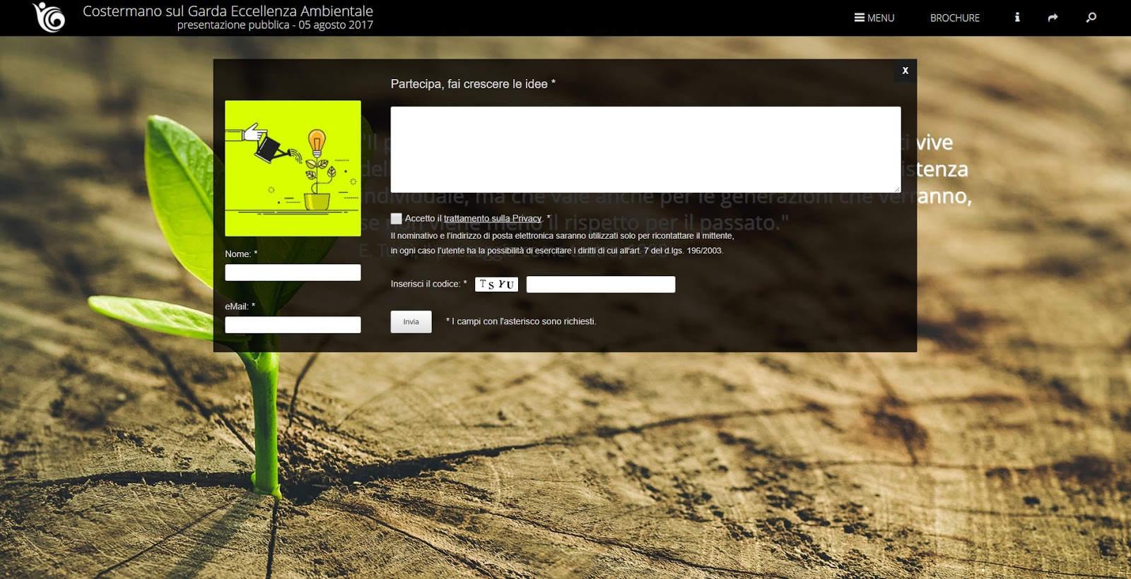 Il primo consiglio, è quello che dalla schermata principale... cliccate su BROCHURE cosi vi fate un'idea della proposta elaborata per il Comune di Costermano sul Garda.